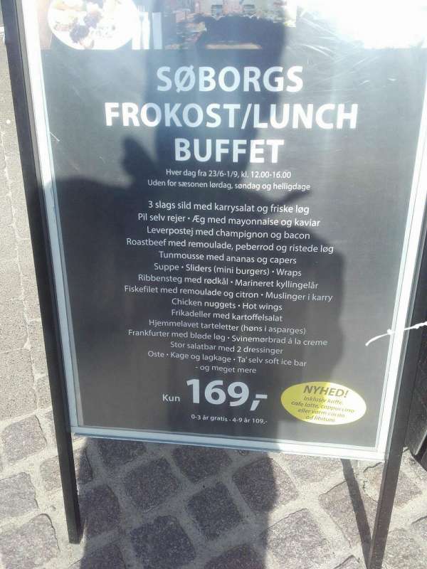 Vi har forhandlet om prisen og klubben giver et tilskud så prisen bliver 100kr for voksne og 50kr for børn (3-11 år) for frokosten
